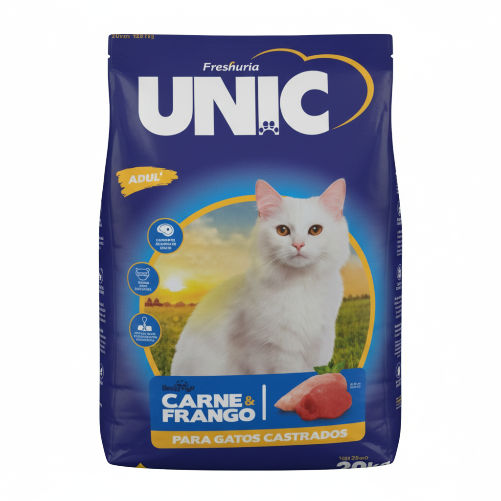 A ração Unic Gatos Adultos Castrados é um alimento completo do tipo premium que tem como foco principal as necessidades de gatos castrados. Segundo a marca, ela contém ingredientes que ajudam a controlar o ganho de peso e o pH urinário, além de contribuir para a saúde da pele e dos pelos.